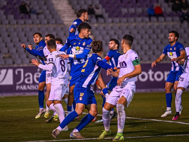 Un momento del partido entre el Real Jaén y el Lorca Deportiva. / Miranda López/Real Jaén CF