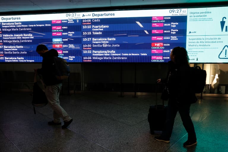 Familiares de los viajeros esperan información en la estación de tren de Huelva