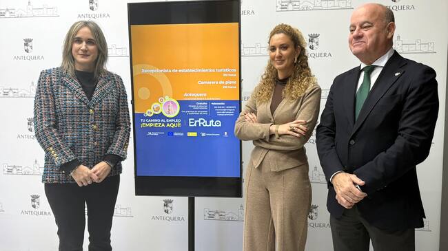 La Diputación de Málaga y el Ayuntamiento de Antequera han presentado este viernes el proyecto 'Enruta', una iniciativa de formación y empleo que contará con una inversión provincial de más de siete millones de euros. El programa, financiado por el Fondo Social Europeo Plus, contempla para la ciudad seis acciones formativas que beneficiarán a un total de 90 personas desempleadas pertenecientes a colectivos vulnerables.