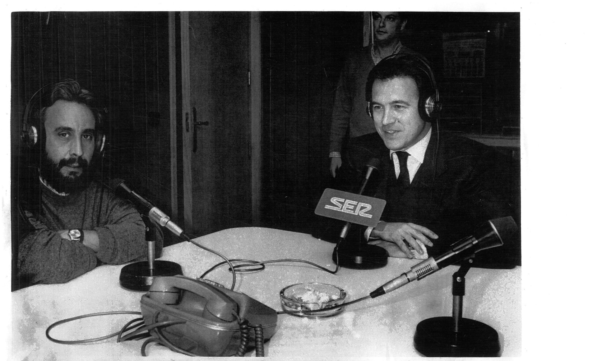 En la foto de Pérez Cabo, el 20 de enero de 1988, Pedro Pacheco interviene en Hora 25 junto al periodista Rafael Plaza, entonces director de Radio Cádiz.