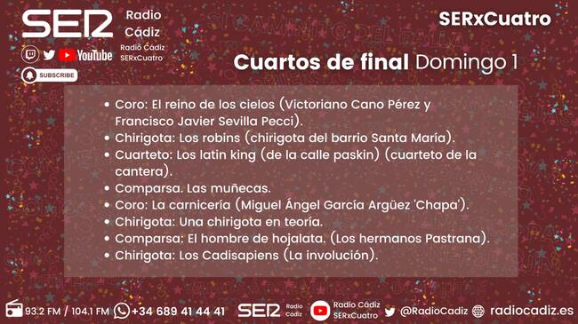 Quién canta hoy en el COAC 2026: orden de actuación de la tercera sesión de Cuartos de Final