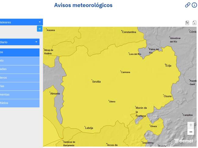 El Ayuntamiento de Sevilla ha decretado el cierre preventivo parques públicos, cementerio e instalaciones deportivas al aire libre ante las previsiones meteorológicas y los avisos amarillos decretados por la Agencia Estatal de Meteorología (Aemet) a causa de lluvias y tormentas con fuertes rachas de viento en las comarcas hispalenses.