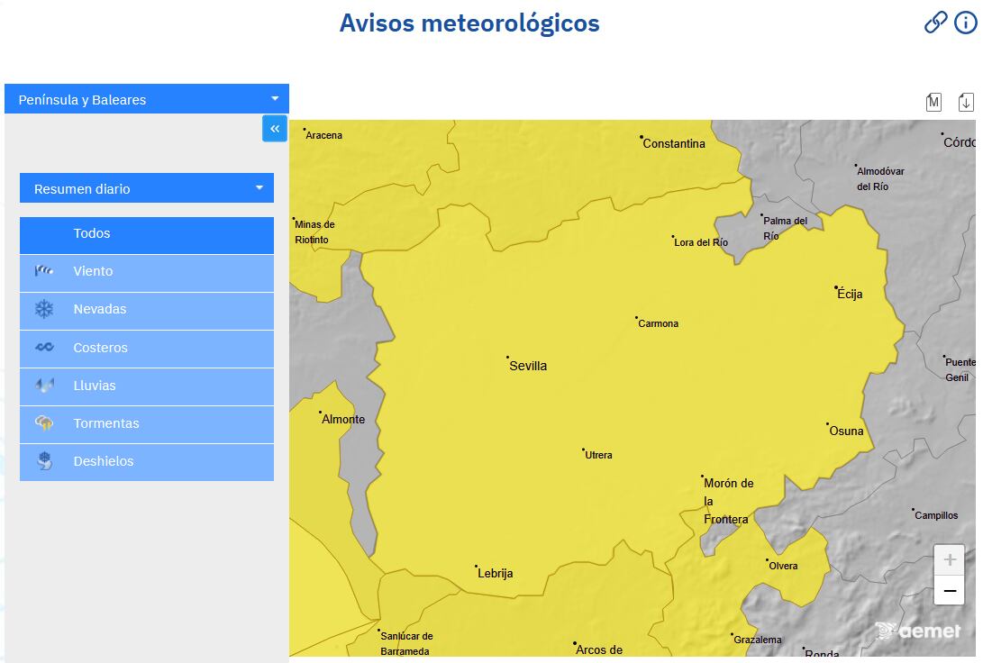 El Ayuntamiento de Sevilla ha decretado el cierre preventivo parques públicos, cementerio e instalaciones deportivas al aire libre ante las previsiones meteorológicas y los avisos amarillos decretados por la Agencia Estatal de Meteorología (Aemet) a causa de lluvias y tormentas con fuertes rachas de viento en las comarcas hispalenses.