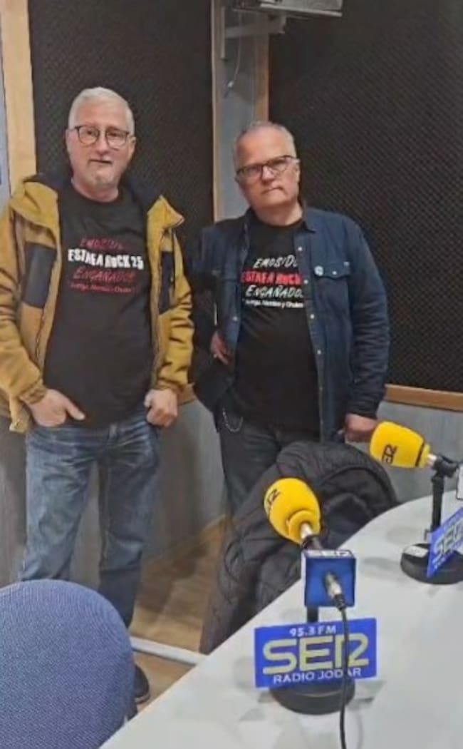 Aquí la única persona que por ahora sabe que le puede venir por todos lados que está eres tú. Por eso hemos venido aquí, porque es que nosotros estamos alucinados. Normalmente no... Y menos de una cadena... Pues si fuera Radio Jódar, tal... Vale, pero es que es una Cadena SER. O por ejemplo, un compañero mío tiene una cadena COPE. Entonces, que una cadena que más o menos tiene detrás un modo de hacer radio, resulta que esté sacando esto tal cual es, que dos pobres pringados autónomos tengamos voz y... A mí me alucina, me alucina. Sí, lo tengo yo. Un anécdota, me he acordado ahora. Estuve hablando con una chica que es presidenta de una revista muy importante. Bueno, ni lo, ni la revista. La Metal Hammer. La Metal Hammer. Fue el viejo... Aquí salió... - Que lo cubrió, sí. - La Metal Hammer, es la revista más importante de Europa. No estamos hablando de... De este rollo de música. Sí. Entonces, pues estaba... Fue a entrevistar, tocaban en Sevilla, tocaban Sociedad Alcohólica, y fue a hacerle la entrevista. Claro. Recuérdate, tal, que nos vimos en El EstaKa Rock. Y salta el batería, que es el que hace de rock manager y tal, y le dice, El Estafa Rock... - Ya también ha llegado. - No ha llegado, no. Es que nos siguen, es que esto ha llegado lejos. No es cualquier cosa. Nos están siguiendo en... Nadie pone nada, nadie dice nada, pero nos siguen muchísima gente, muchísima gente. Yo voy a festivales, voy a conciertos, y ahora ya no me preguntan por mis grupos ni por mis eventos. Si la pregunta... ¿Cómo va eso, eh? Estoy siguiendo la novela, estoy siguiendo la novela. Y a mí lo gracioso de todo esto es que yo... Chacho, me voy a hacer famoso por esto... Tengo muchos contactos con políticos. Porque yo ya tengo una edad, entonces, pues claro, yo tengo amigos míos íntimos en la política, metidos en ayuntamientos, tengo, por ejemplo, para que te hagas una idea, yo trabajo en Almoradí con el PP, que son mis amigos, conocidos todos. Pero también trabajo en Elche con Comisiones Obreras y UGT...