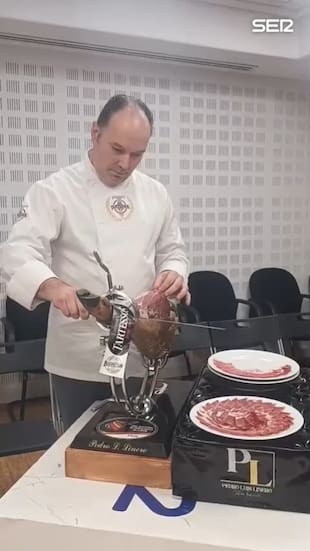 Viernes, víspera de fin de semana y Día de la Radio, lo que es sinónimo de ambiente festivo,, lo que a su vez implica vivir momentos acompañados de buenos platos como los que ofrece el cortador profesional de jamón Pedro Luis Linero. En el programa Hoy por Hoy Sevilla, dirigido por Salomón Hachuel, ha dado una lección magistral de lo que hay que hacer bien para cortar una pata.