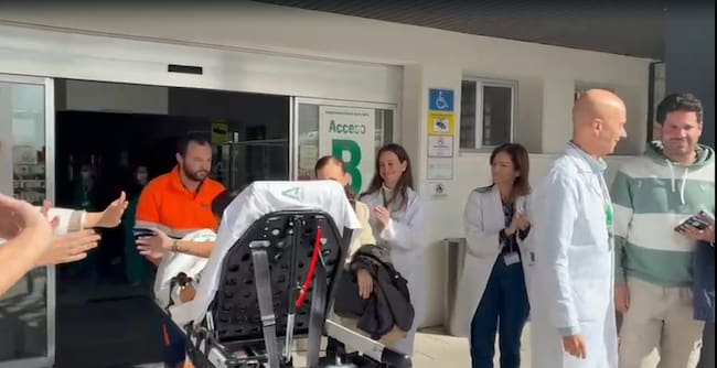 Dos hermanos, heridos en el accidente de Adamuz, abandonan el hospital Reina Sofía de Córdoba.