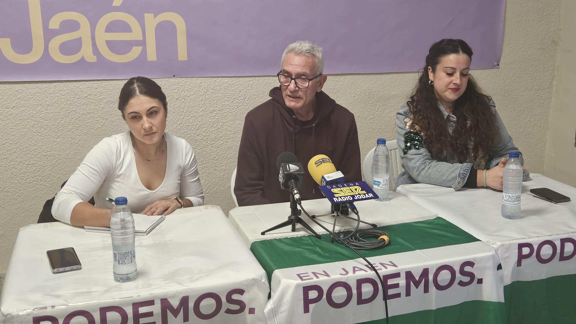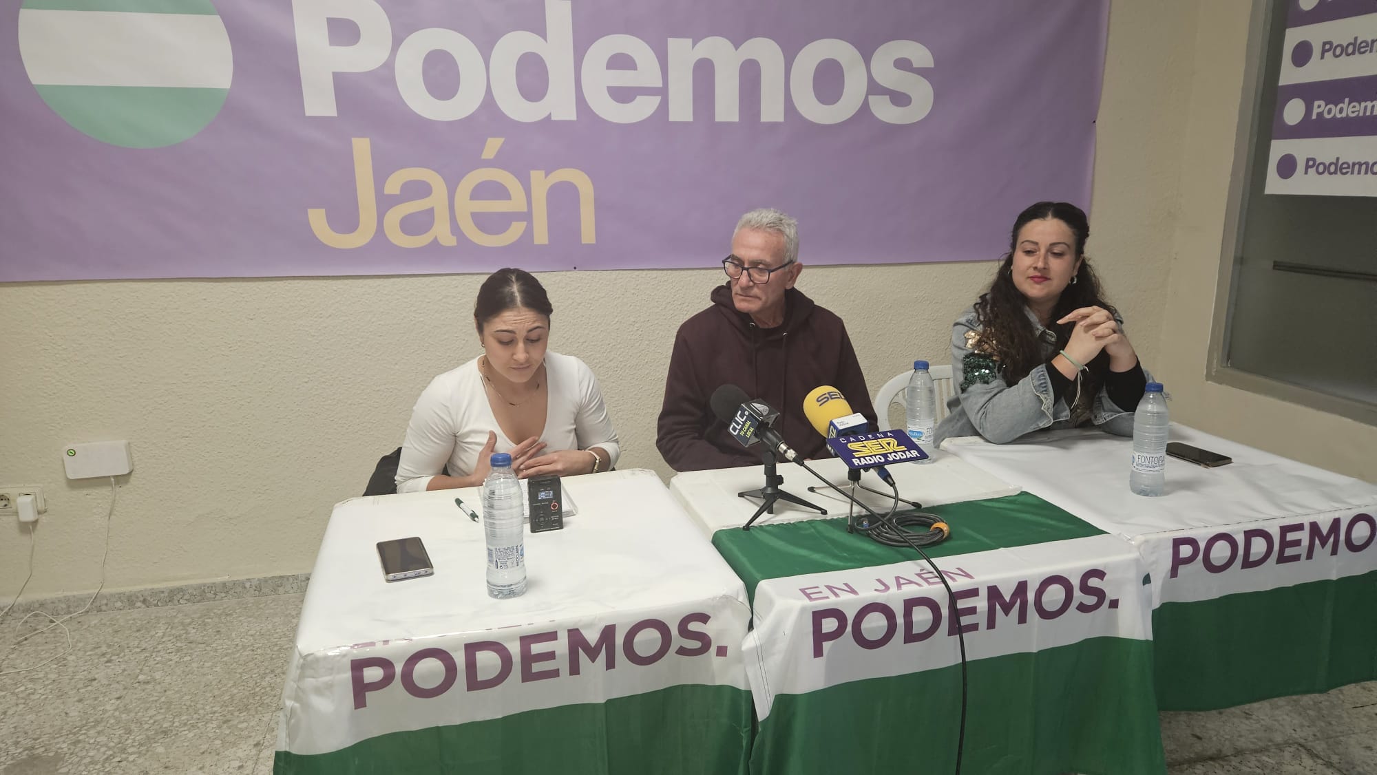 Asamblea en la tarde de ayer, en la sede de Podemos, C/ San Fernando, con intervenciones de las dos concejalas NO adscritas y del histórico líder sindical y ex diputado en el congreso por la provincia de Jaén, Diego Cañamero, para exponer la situación con la aprobación por el Consejo de Ministros del Gobierno de España la reducción a 5 las peonadas necesarias para la solicitud del subsidio por desempleo y Renta Agraria, llegando a afirmar que no es tal, para paliar la situación provocada con el tren de borrascas y la perdida de jornales en el campo, en la campaña de aceituna.