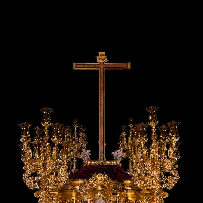 La carpintería, ebanistería y estructura interior han sido realizadas por Miguel Molina, autor asimismo de la nueva cruz procesional, ejecutada con diferentes maderas nobles y conforme a una tradición formal vinculada al barroco y al renacimiento de Andalucía oriental. Esta pieza se integra con naturalidad en el conjunto y refuerza la nobleza y coherencia estética de la obra.