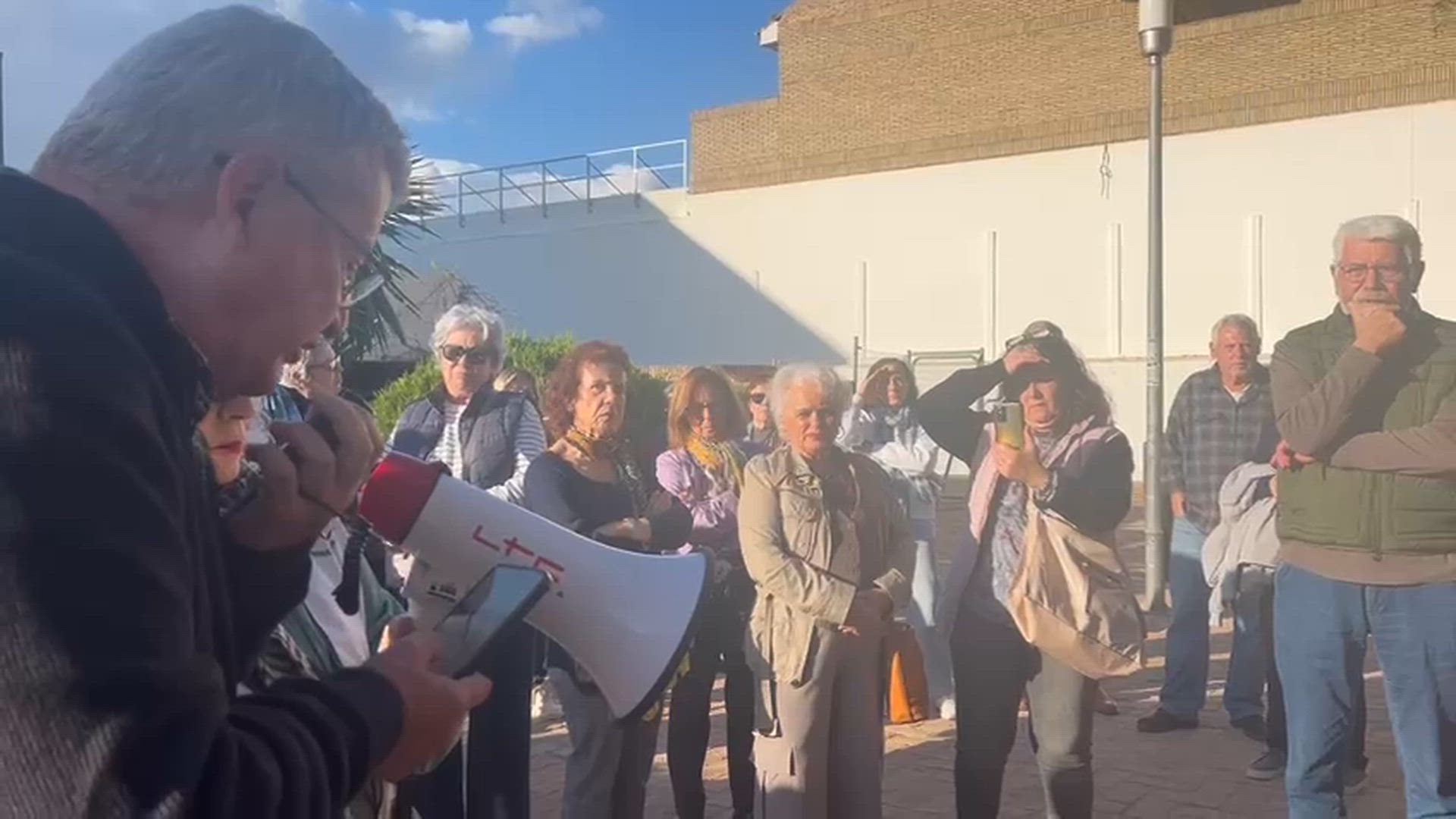 Marea Blanca comunica a los asistentes al acto en el teatro de Mairena del Aljarafe que ha sido prohibido por la Junta Electoral