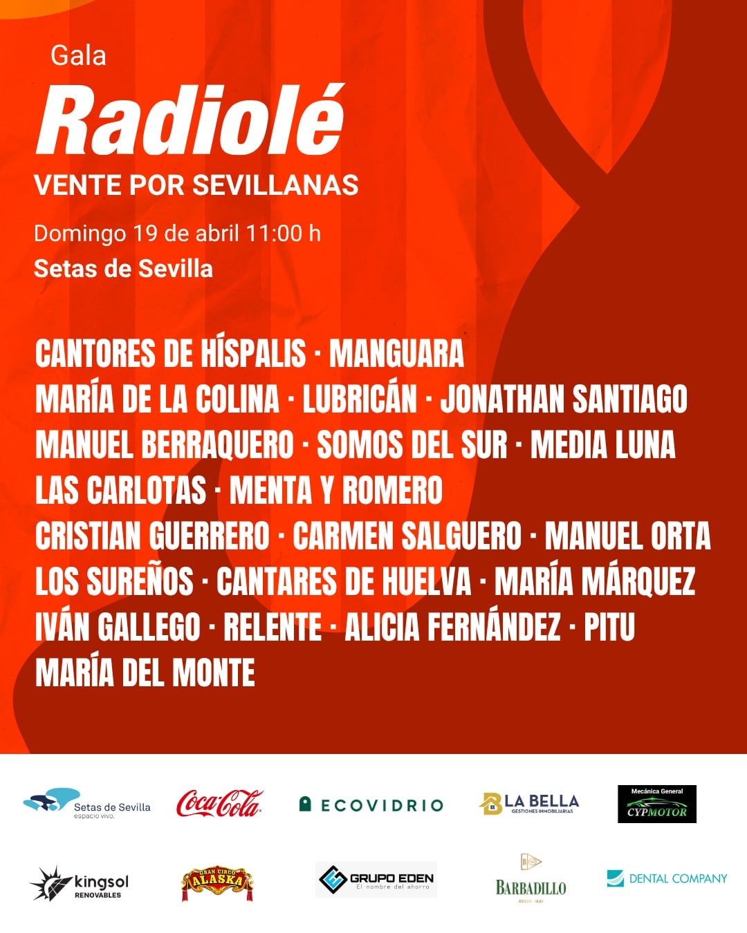 Radiolé vuelve a sacar a la calle uno de sus formatos más emblemáticos con un evento único que reunirá a algunos de los nombres más destacados del género, en una mañana en la que la música en directo será la gran protagonista. Un encuentro pensado para disfrutar de las sevillanas en su esencia, combinando tradición, emoción y actualidad.