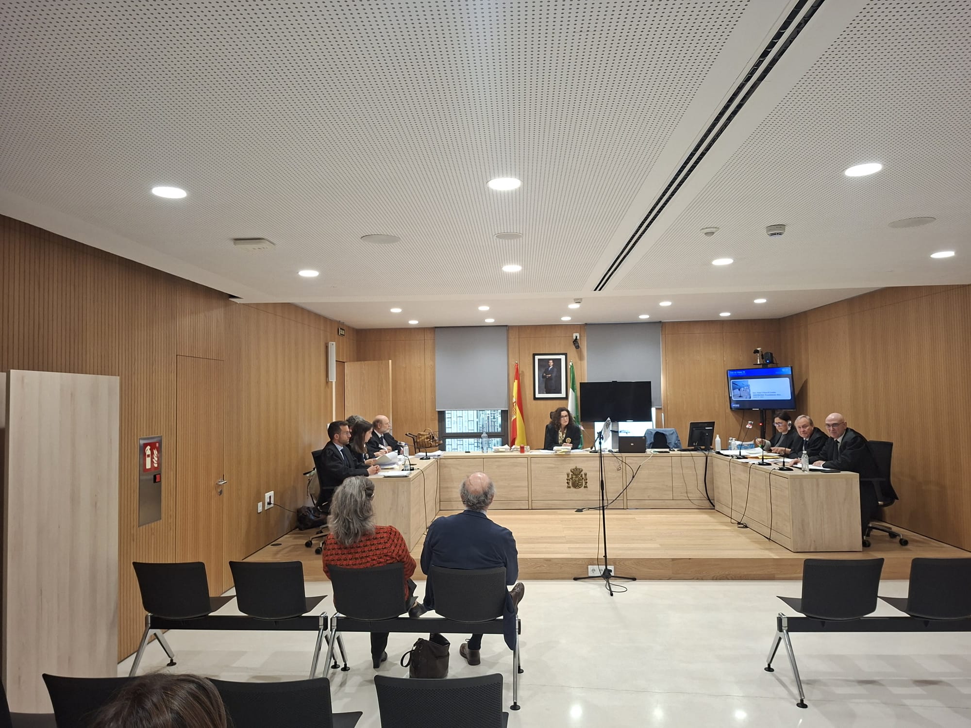 A la sala número 16 de la Ciudad de la Justicia han acudido numerosos compañeros y compañeras de la psiquiatra. Tantos que no han podido entrar en un espacio muy limitado en plazas. Está siendo defendida por un abogado del colegio de Médicos, además de la asistencia jurídica de aseguradoras de la acusada y del Servicio Andaluz de Salud (SAS).