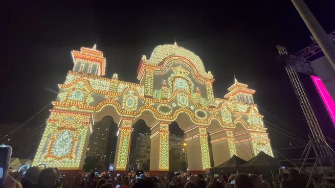 En plena Feria de Sevilla, y una vez 'estrenada' la portada, hablamos con el responsable de su construcción: "Hemos conseguido encender la portada no por trozos sino a la misma vez"