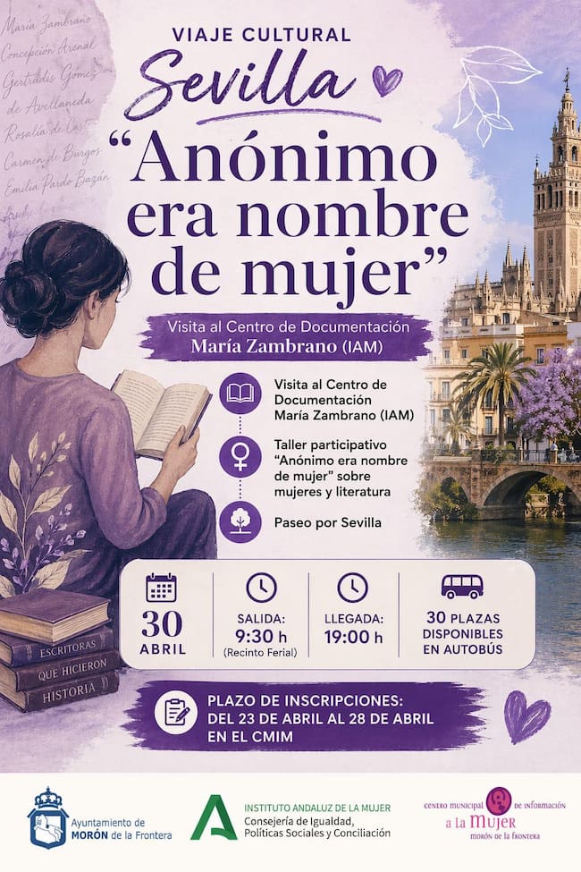 El Centro Municipal de Información a la Mujer (CMIM) de Morón de la Frontera ha organizado un viaje cultural a Sevilla bajo el lema “Anónimo era nombre de mujer”, con el objetivo de acercar la literatura y el papel de las mujeres en la historia a la ciudadanía.