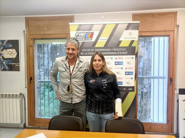 El ferent de la FAE, Carles Visa, i la surfista de neu Maeva Estevez. / Ràdio SER Principat d'Andorra