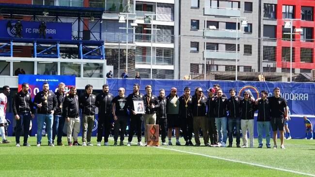 Els jugadors del VPC reben el reconeixement per part de l'FC Andorra. / FC Andorra