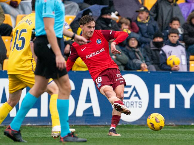 El lateral dret de l'FC Andorra, Alex Petxarroman, durant el partit contra l'Alcorcón / FCA
