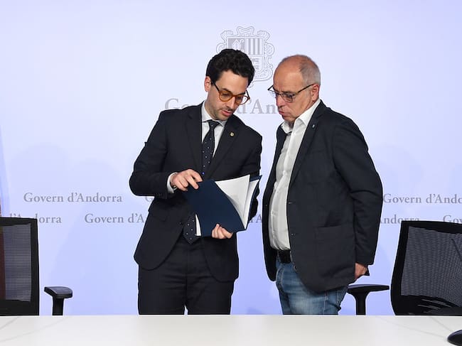 El ministre de Medi Ambient Guillem Casal i el president de l'APRA Xavier Coma, durant la roda de premsa / SFGA