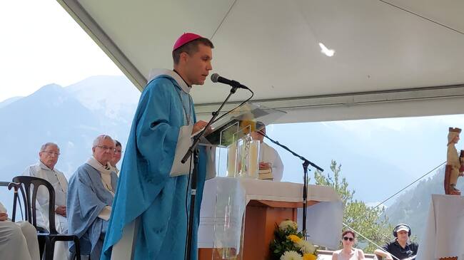 El ja bisbe d'Urgell Josep Lluís Serrano Pentinat durant l'eucaristia celebrada aquest dissabte al santuari de Canòlich quan s'ha comunicat la decisió del Vaticà. . / Bisbat d'Urgell