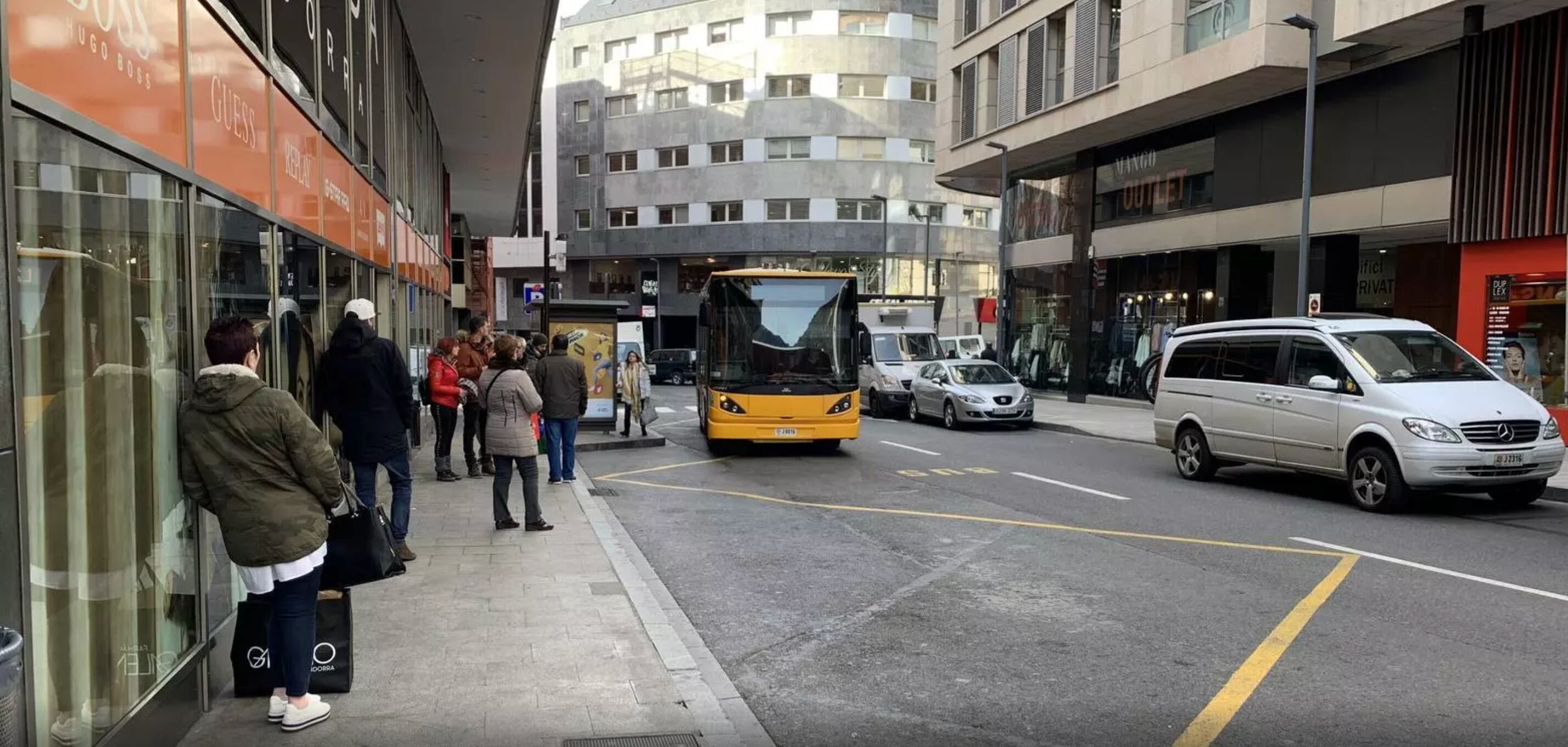 El bus interparroquial entre Andorra la Vella i Escaldes, a la tardor.