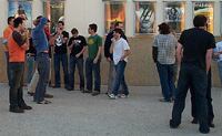 En el primer pase de la película en Huesca han sido algunos extras los que han acudido a ver El reino de los cielos. Echan en falta una mayor número de escenas grabadas en el interior del castillo. Uno de los extras es el ya conocido en esta ciudad como el enterrador de la película; reconoce sentirse satisfecho e impactado por haber salido en un largometraje de esta importancia.