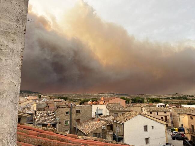 El fuego que se ha declarado poco más de las tres de la tarde avanza sin control hacia el santuario de la Misericordia. A su paso, las llamas arrasan superficie agrícola, pastos y masa forestal. Es un incendio “muy complejo y fuera de capacidad de extinción debido al viento”, ha explicado el director general de gestión forestal, Diego Bayona. La fuerza del aire ha sido tal que ha alcanzado una velocidad superior a los 80 kilómetros por hora. Un viento que ha impedido que los hidroaviones no se pudieran incorporar hasta entrada la tarde, también algún helicóptero del Gobierno de Aragón.