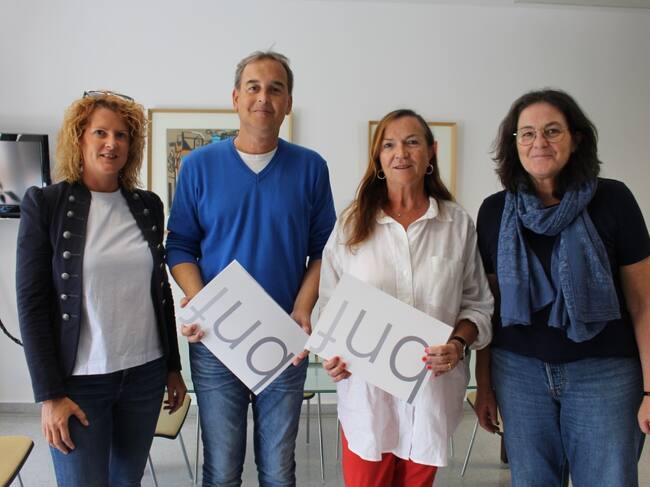 Merche Gracia, Alfonso Adán, Pilar Casado y Yolanda Gracia en la firma del convenio del Ayuntamiento de Binéfar y la Asociación de Empresarios de la Litera