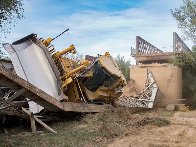 Estado en el que quedó el puente con el camión y el bulldozer / Javier Blasco (EFE)
