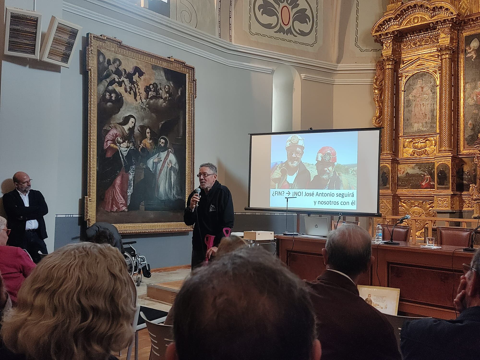Para finalizar José Luis Villarroel Salcedo, catedrático del departamento de Informática e Ingeniería de Sistemas, desarrollaba la charla audiovisual José Antonio Cuchí. Ciencia y Tecnología ¿Un sabio renacentista? mostrando las polifacéticas tareas de este profesor en los ámbitos de la ciencia como sus estudios en manantiales, yacimientos romanos y también en telecomunicaciones, espeleología, glaciares, y muchos otros ámbitos. Tras este momento el profesor ha recibido el regalo de un martillo de geólogo personalizado.