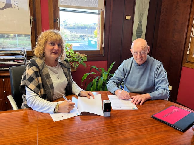 La presidenta de la Comarca de la Jacetania, Montse Castán, y el presidente de la Asamblea de la Cruz Roja Jacetania, Luis Castán, han firmado en la sede comarcal el Convenio de colaboración entre ambas entidades para el ejercicio de 2.022. Se lleva firmando anualmente desde hace más de una década, y busca regular el funcionamiento, la organización, gestión y coordinación de los servicios prestados por la Asamblea de Cruz Roja dentro del ámbito territorial de la Comarca de la Jacetania. La entidad comarcal aportará como máximo la cantidad de 42.000 euros para el servicio de atención a pacientes inmovilizados y transporte socio-sanitario y 4.200 euros para el servicio de apoyo educativo.