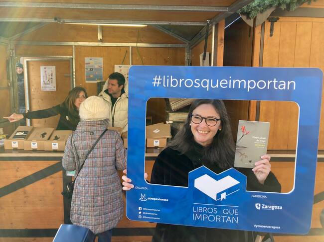 En una caseta de madera, alejada unos metros de la zona más navideña de la Plaza del Pilar, aparece Atrapavientos repartiendo y recabando: "Los tenemos separados por tres tipos de edad: los de adultos, infantiles y juveniles. Abrir de nuevo en Zaragoza después de las cinco ediciones precedentes es para nosotros jugar en casa, como en una Romareda Llena", ha asegurado Jorge Gonzalvo, de este colectivo literario.