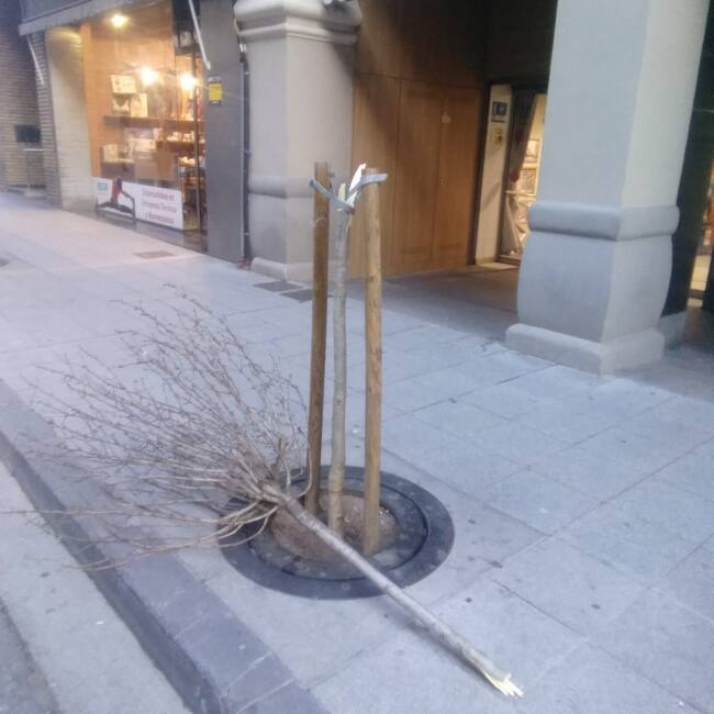 Estado en el que quedó un árbol en la calle Zaragoza