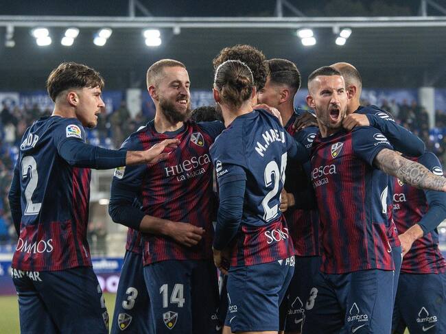 Los jugadores de la SD Huesca celebran uno de los goles al Levante /SD Huesca