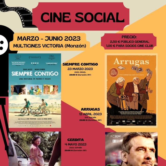 El Ayuntamiento de Monzón, a través de la concejalía de Asuntos Sociales, junto al Circuit Urgellenc han programado un ciclo de cine social del 23 de marzo al 1 de junio en el Cine Victoria con la proyección de las películas: Siempre contigo, Arrugas, Cerdita y Unzué. El último equipo de Juancar.