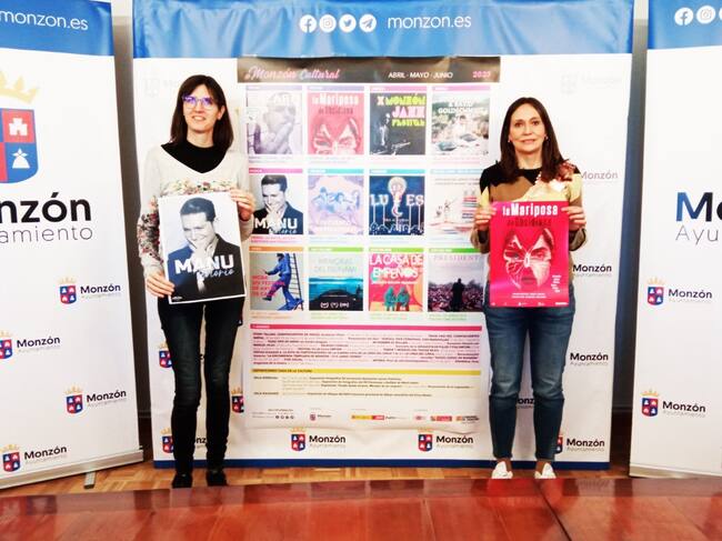 La concejal de Cultura del Ayuntamiento de Monzón, Nuria Moreno, y la técnico del área, Elena Franco, ha presentado la programación del #MonzónCultural correspondiente a los meses de abril, mayo y junio. El cantante Manu Tenorio será uno de los platos fuertes con su Tour “La verdad”. 20 años de carrera musical, el día 26 de mayo en el Victoria.