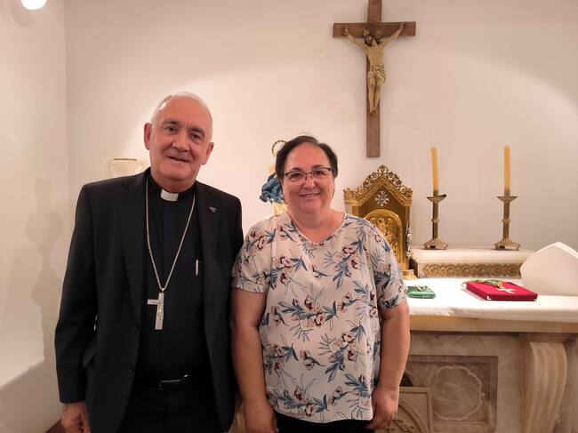 Marta Calavera Isanta, nueva ecónoma de la Diócesis de Barbastro-Monzón junto con el obispo Don Ángel Pérez