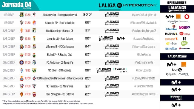 Horarios de la cuarta jornada en la Liga Hipermotion
