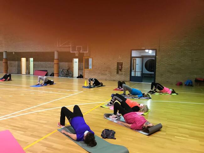 Gimnasia de mantenimiento en un pabellón de Huesca