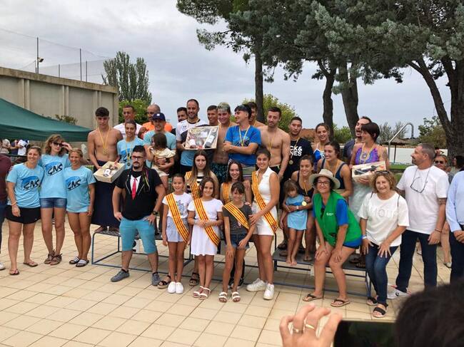 Animada jornada donde lo importante es pasarlo bien y disfrutar de la natación y recaudar fondos para la Asociación contra el Cáncer de Monegros.