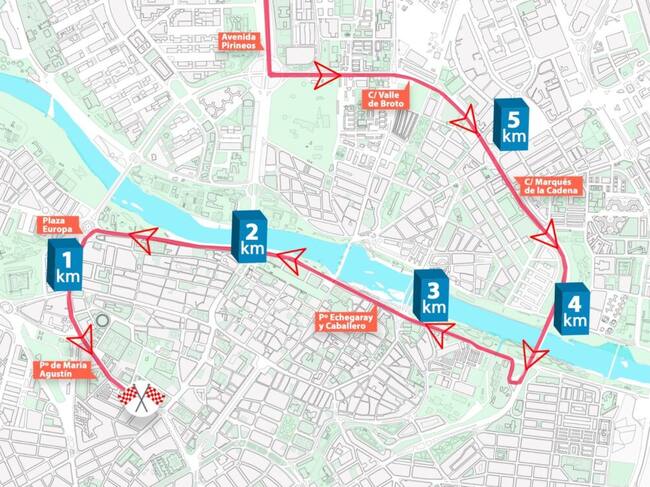 No se podrá estacionar en todo el entorno de la meta: César Augusto (entre Salamero y Puerta del Carmen), Albareda, Almagro, Castellví, Hernán Cortés, Madre Sacramento, Juana Francés, Anselmo Clavé y ,por supuesto, en Paseo maría Agustín y Paseo Pamplona. Se permitirá el acceso a los garajes siguiendo los itinerarios que indicará la Policía Local.