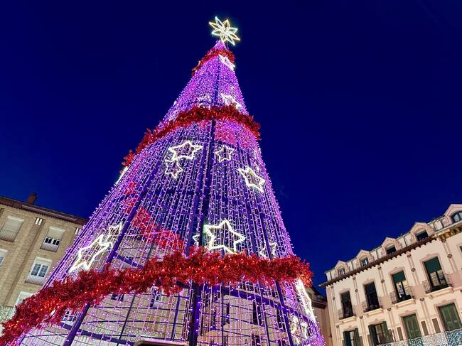 Árbol de Navidad en plaza de Luis López Allué de la ciudad de Huesca