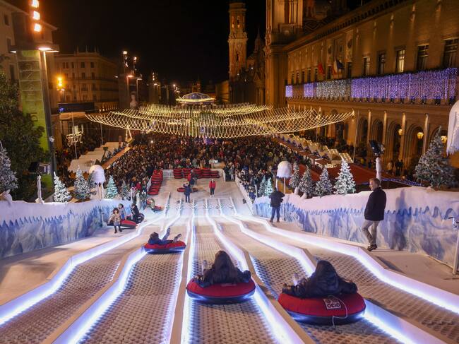 ZARAGOZA, 01/12/2023.- Un momento del tradicional encendido de las luces navideñas de Zaragoza este viernes. EFE/ Toni Galán / Toni Galan (EFE)