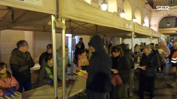 La plaza Luis López Allué de la ciudad de Huesca volvía a ser escenario, un año más, de uno de los principales actos previos al carnaval, con el tradicional reparto de longaniza y chorizo. Un total de mil raciones para los oscenses que volvían a llenar la plaza y hacer una larga fila alrededor de la misma.