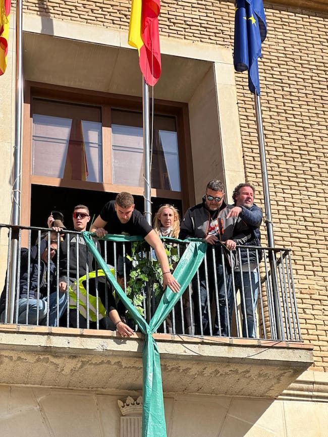 En Tamarite los agricultores han colocado un lazo verde en el balcón del ayuntamiento, y en el monumento a Joaquín Costa. En los próximos días las visitas a la OCA seguirán por Binéfar y Monzón.