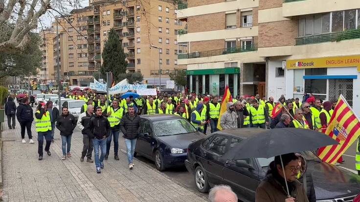 Unos 50 tractores y centenares de agricultores a pie han vuelto a movilizarse en la capital oscense este viernes para entregar un manifiesto en la subdelegación del Gobierno en Huesca.