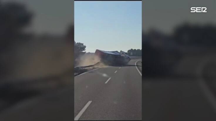 Investigado por conducción temeraria un camionero de 63 años que volcó en la AP-2