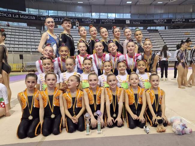Entre los equipos altoaragoneses, hay que destacar los resultados del Club 90 Huesca que sumó siete medallas de oro, dos platas y dos bronces. Lucía Voltán. Alevín B. Oro, Conjunto alevín B. Oro, Conjunto Benjamín Base Oro, Marta Otin. Junior absoluto. Oro, Conjunto Junior absoluto. Plata, Paula Torres. Infantil Base. Oro, Conjunto infantil, Base. Plata, Claudia Casas. Juvenil Base. Oro, Julia Ballarin. Infantil autonómico A. Bronce, Vega Torrens. Cadete autonómico A. Oro y Mar Sesé. Juvenil B. Bronce