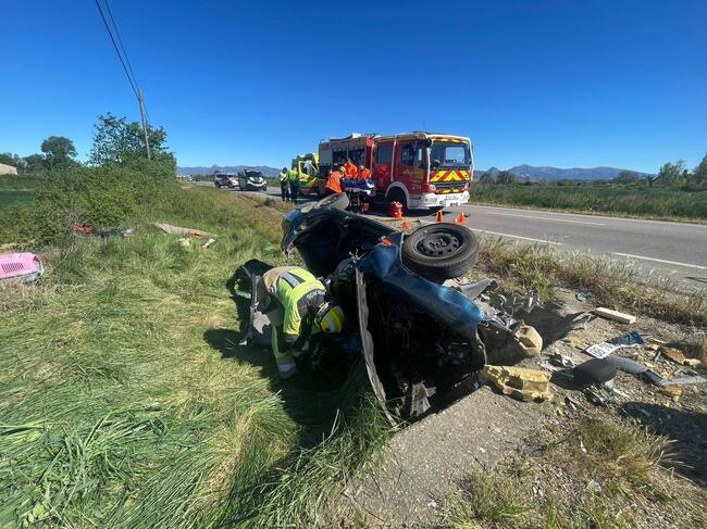 Estado del vehículo tras volcar lateralmente en la A-131
