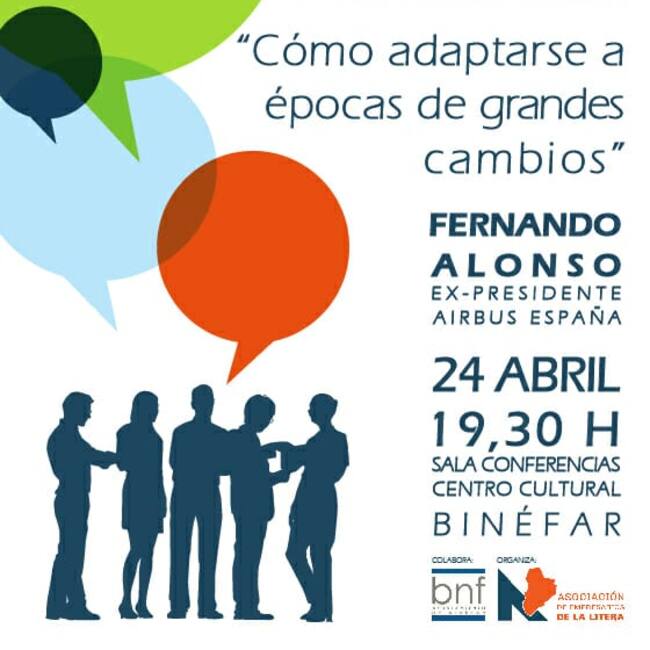 El expresidente de AIRBUS España, Fernando Alonso, inaugura el ciclo de conferencias este miércoles 24 de abril, a las 19:30 horas, en la sala de conferencias del centro cultural de Binéfar.