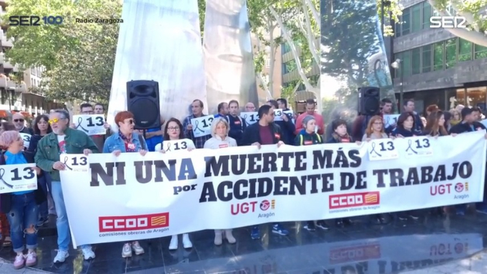 Los sindicatos se han vuelto a concentrar este miércoles en Zaragoza en repulsa por los dos últimos fallecidos en accidente laboral esta semana