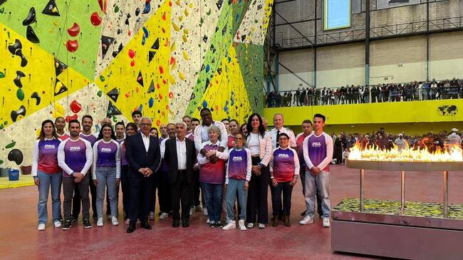 El momento del encendido tuvo lugar en el centro de escalada L’Usine de Tarbes, ciudad hermanada por Huesca, por lo que Lorena Orduna agradecía la invitación y recordaba que este año se cumplen 60 del hermanamiento entre las dos ciudades.